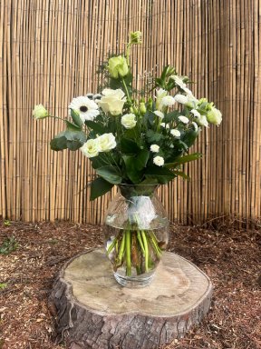 Met een frisse mix van bloemen maken we dit boeket Fris Wit.