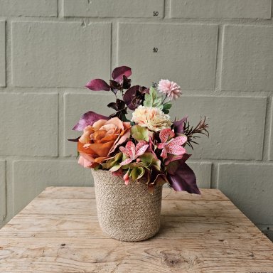 Onze collectie zijden bloemcreaties is net zo dynamisch als de seizoenen. Omdat wij wekelijks vernieuwen en uitsluitend werken met hoogwaardige, handgeselecteerde materialen, is elk arrangement uniek.