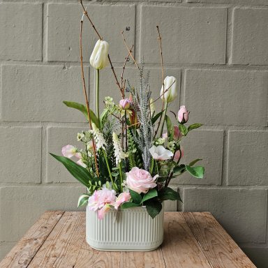 Onze collectie zijden bloemcreaties is net zo dynamisch als de seizoenen. Omdat wij wekelijks vernieuwen en uitsluitend werken met hoogwaardige, handgeselecteerde materialen, is elk arrangement uniek.