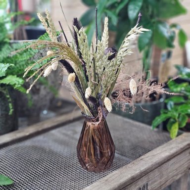 Bruin en beige droogbloemen in vaasje